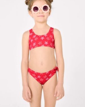 Bikini niña detalles volantes y lazos estampado estrellas marinas